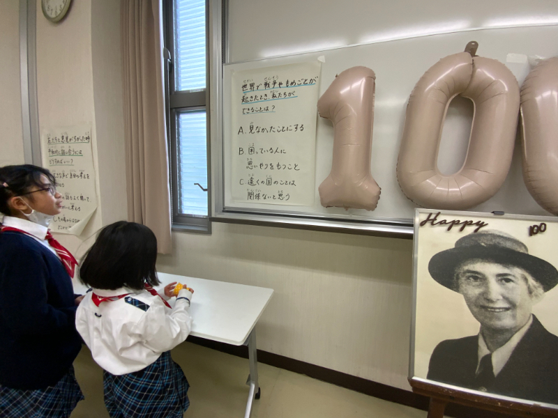 同じく1階にある「イギリスの部屋」では、イギリスのお土産のショートブレッドをもらうことができました。クッキーのようにサクサクとしていてとても美味しかったです。さらにそこでは、海外研修でイギリスに訪れたスカウトたちから、海外研修に行って思ったこと、楽しかったことなど、たくさんの興味深い話を聞くことができました。さらに「シンキングファンドの部屋」では、ガールスカウト運動の創始者であるロバート・ベーデン-ポウエルさんの妻、オレブさんの写真が飾られたり、ガールスカウトにまつわるクイズなどが展示されていました。