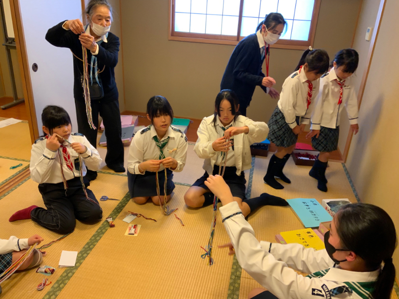 1階の「クラフトの部屋」では、フレンドシップタイ作りをしました。毛糸を結ぶのに苦戦したスカウトも多かったですが、最後には上手に作ることができていました。
